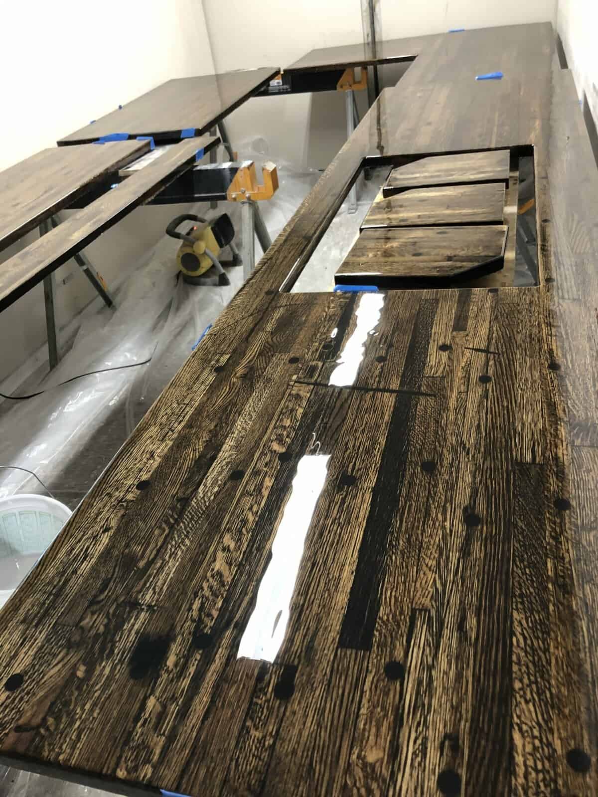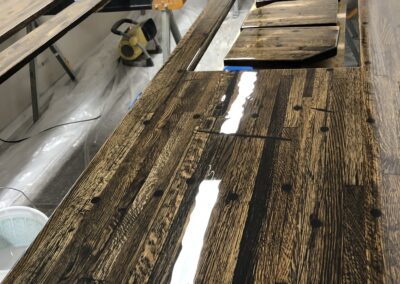 Custom pieces for the kitchen and the home. These are the projects that set Man Caves & More apart from the others! Epoxy countertops, custom cabinets, kitchen islands, dining tables, buffet coffee tables, end tables, sofa tables, side tables, rolling barn doors, rolling ladders, loft ladders, stove hoods, fireplace mantles, wine barrel cabinets . . . and we can go on.