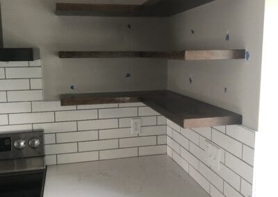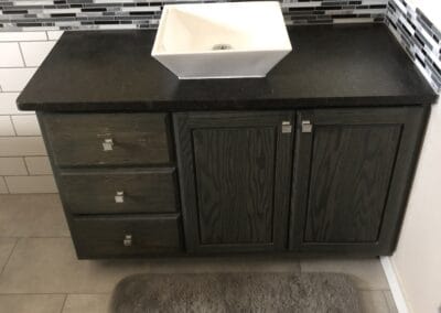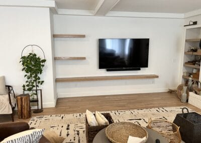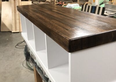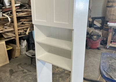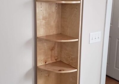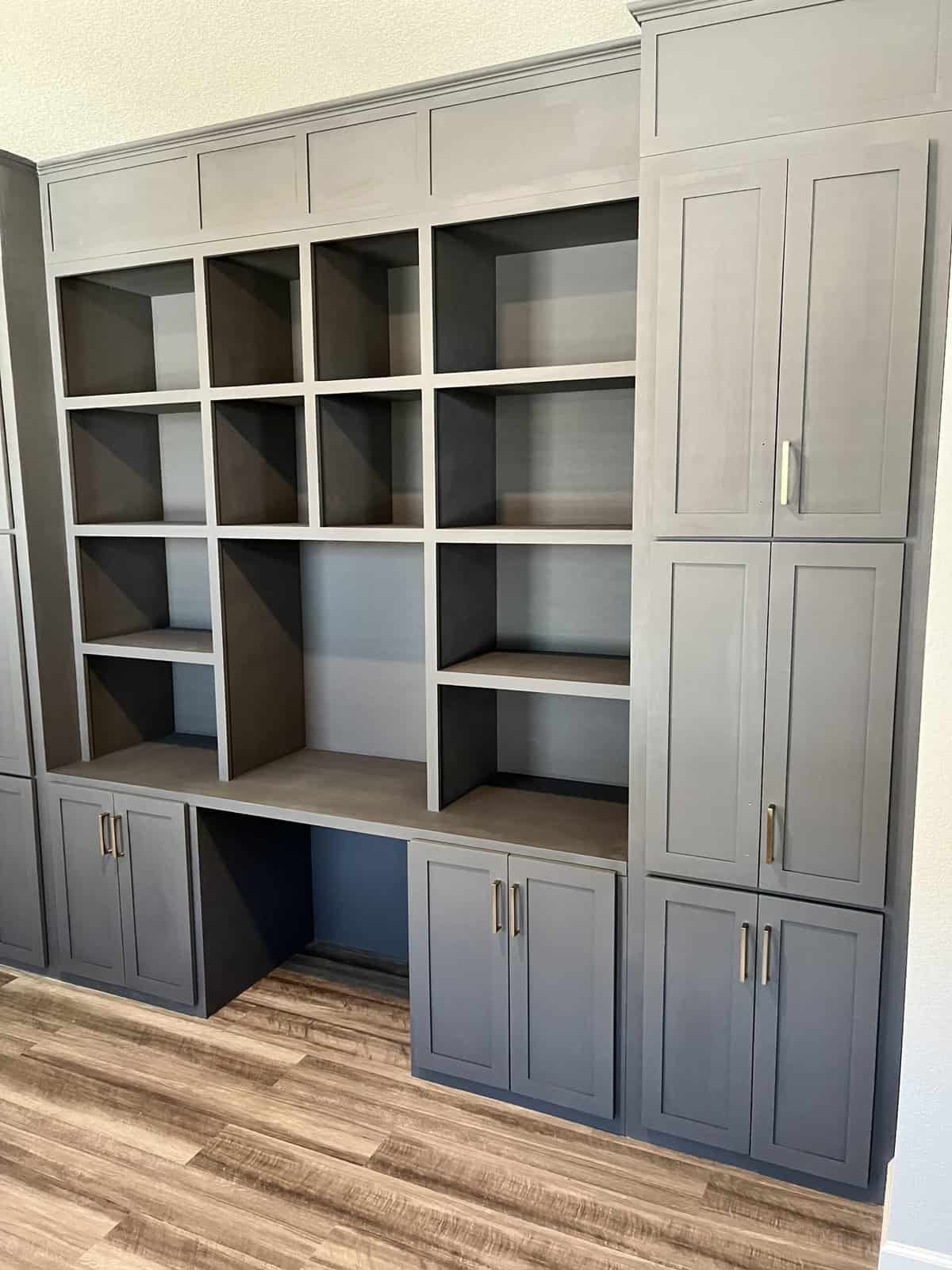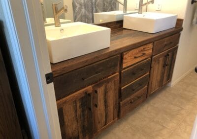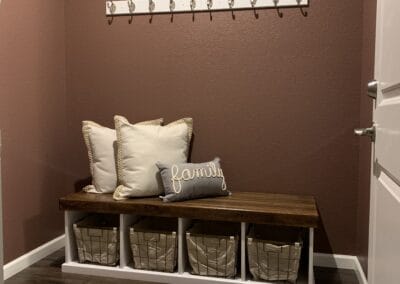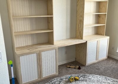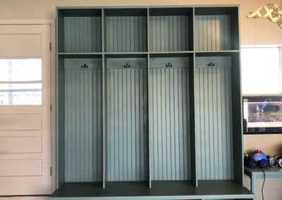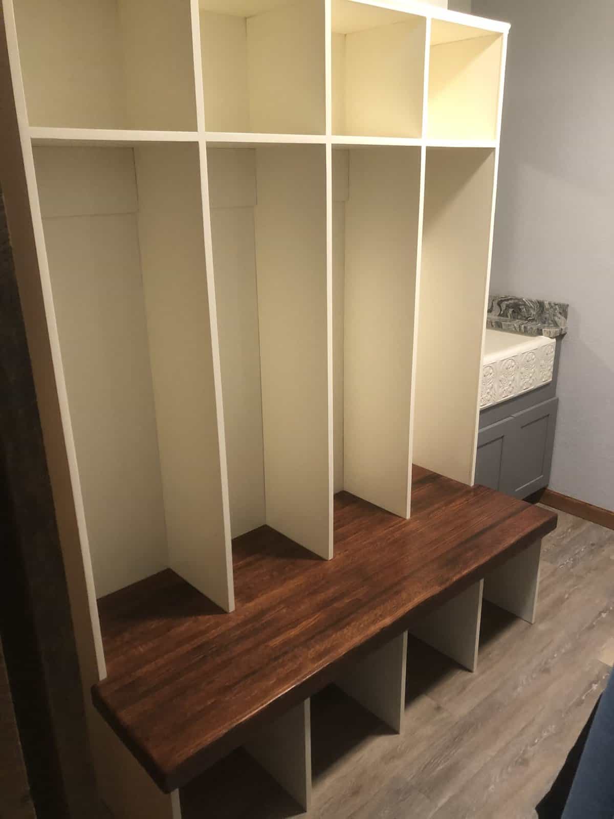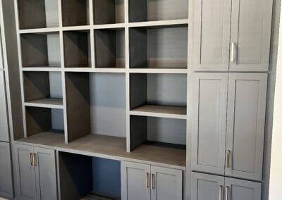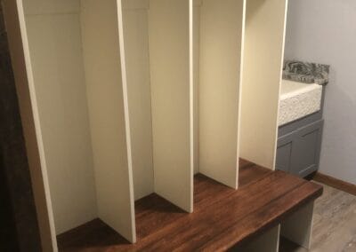 Check the gallery below and you’ll see the possibilities are endless. That’s because they’re all custom – designed and built for the space you have and what you want them to look like. How about an open locker unit for the garage or mud room so everybody’s got a place for their shoes, boots, jackets, hats, sporting equipment, and more? Or maybe a custom vanity for the bathroom remodel? Or some floating shelves in the living room, kitchen, or bedroom? Or a striking built-in with cubies, cabinets, shelves, and a desk?