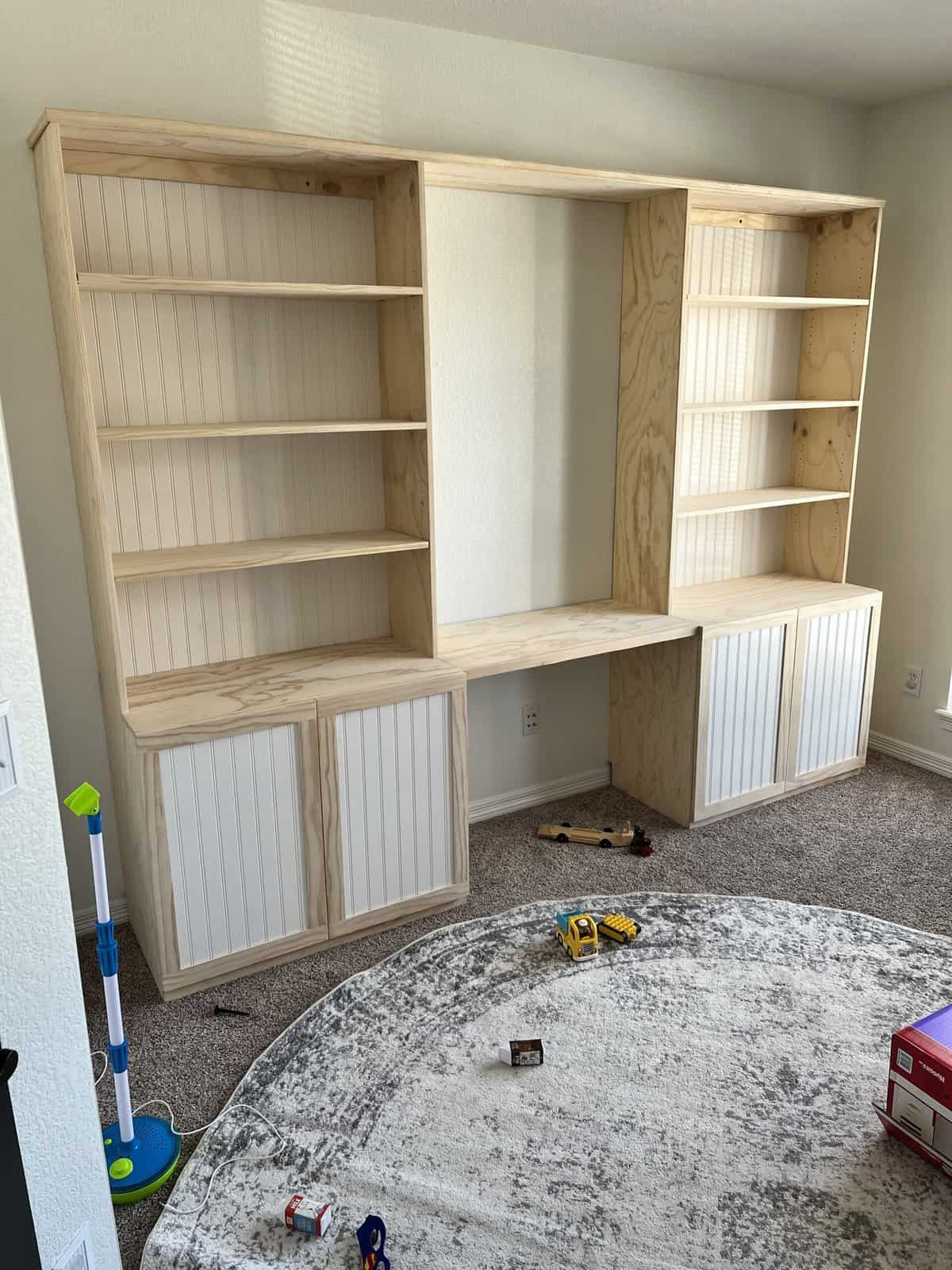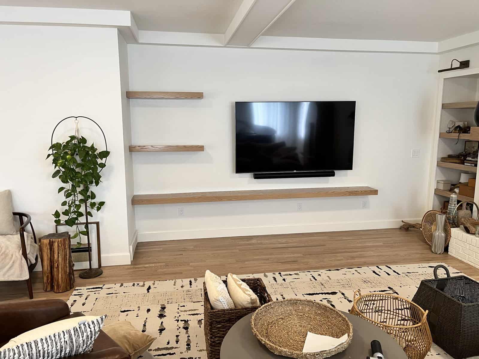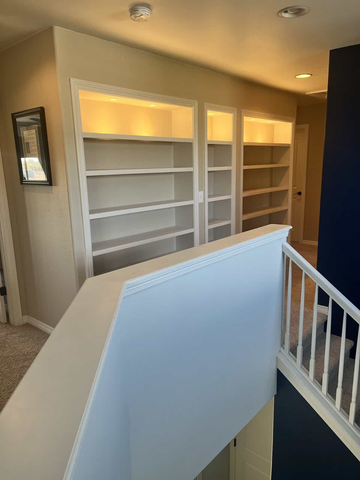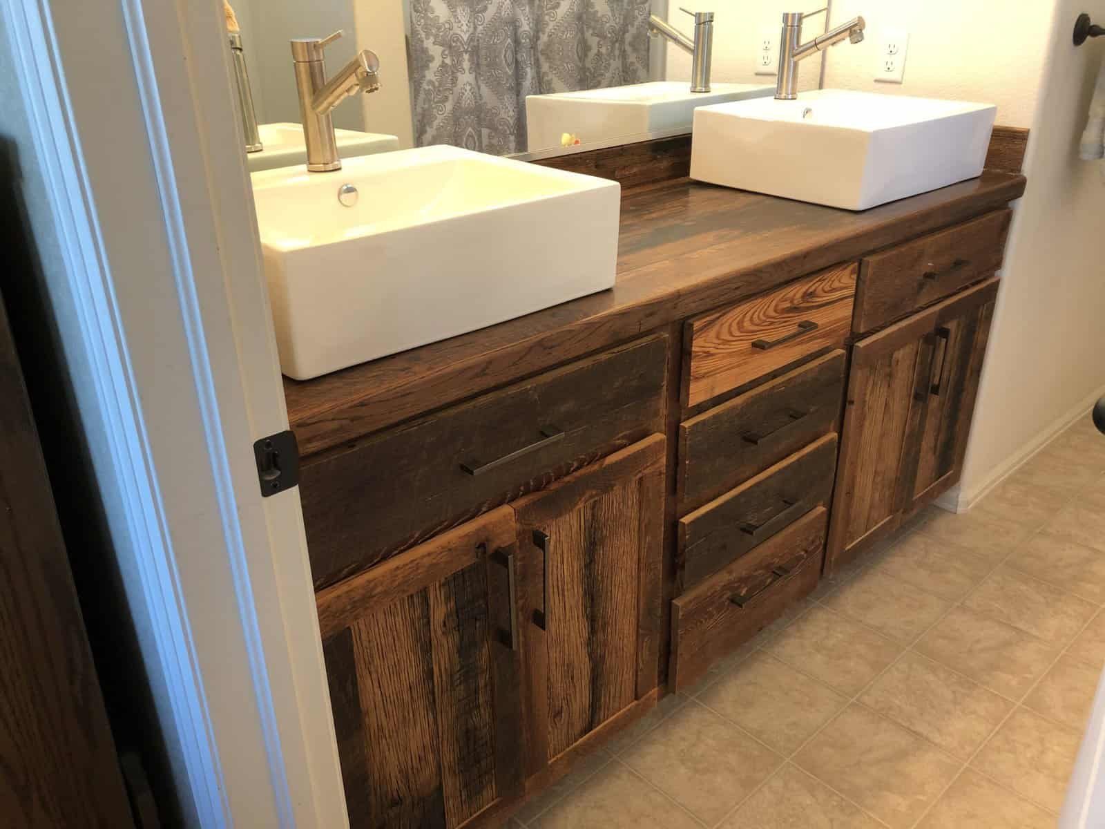 Check the gallery below and you’ll see the possibilities are endless. That’s because they’re all custom – designed and built for the space you have and what you want them to look like. How about an open locker unit for the garage or mud room so everybody’s got a place for their shoes, boots, jackets, hats, sporting equipment, and more? Or maybe a custom vanity for the bathroom remodel? Or some floating shelves in the living room, kitchen, or bedroom? Or a striking built-in with cubies, cabinets, shelves, and a desk?