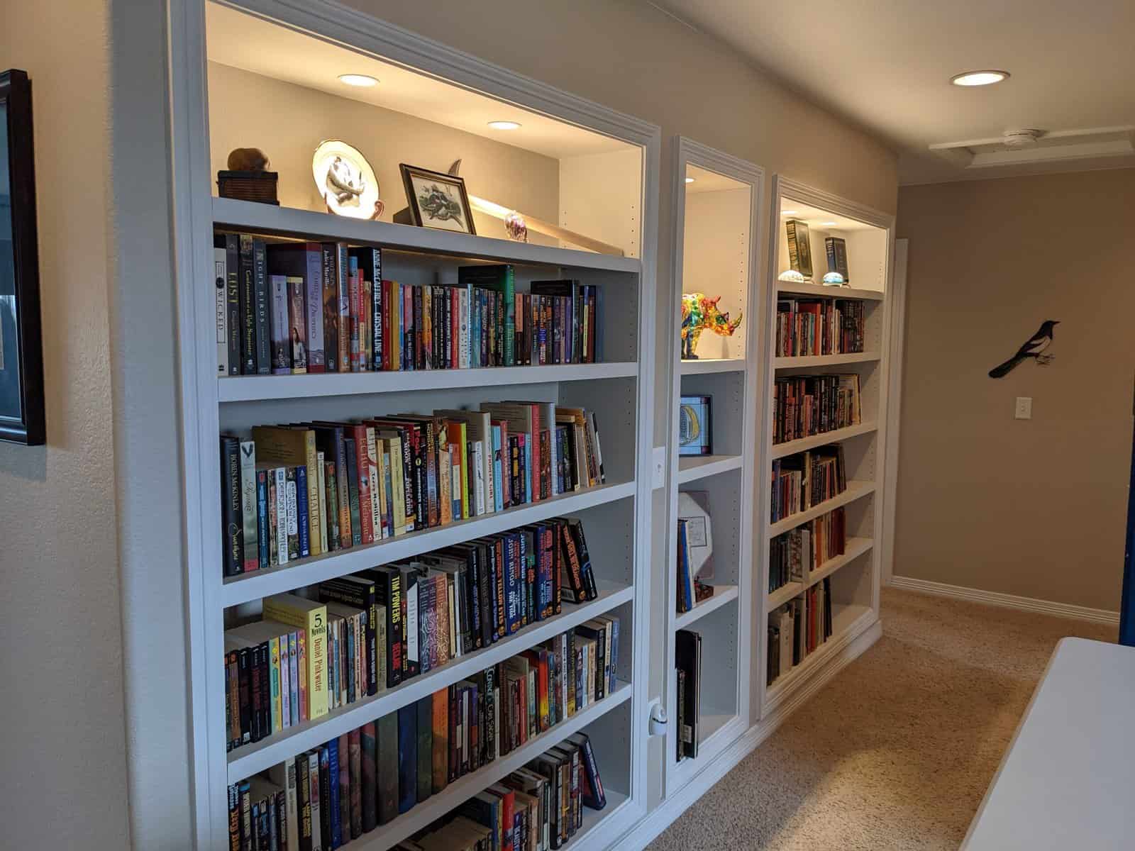 We all have STUFF! And that stuff needs a place to be. That’s why Man Caves & More builds custom shelves and cabinets for Northern Colorado homes and offices. Whether you need a decorative corner curio to display collectibles or a full-blown built-in wall unit with shelving, storage cabinets, and a workspace for a laptop to sit and pay some bills, we’ll create and build the perfect solution to hold you, and your stuff.